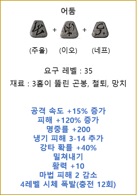 보스몹 사냥에 적합한 룬워드 무기인 '어둠'입니다.